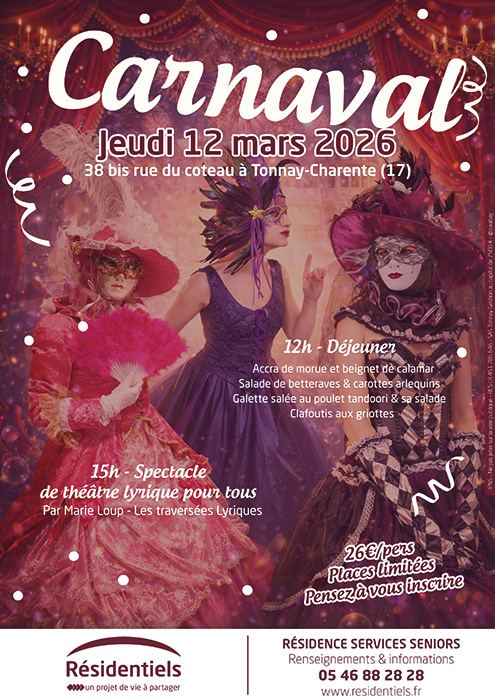 Le 12 mars, le Carnaval s’invite dans notre résidence seniors pour une journée festive placée sous le signe de la bonne humeur et du partage !